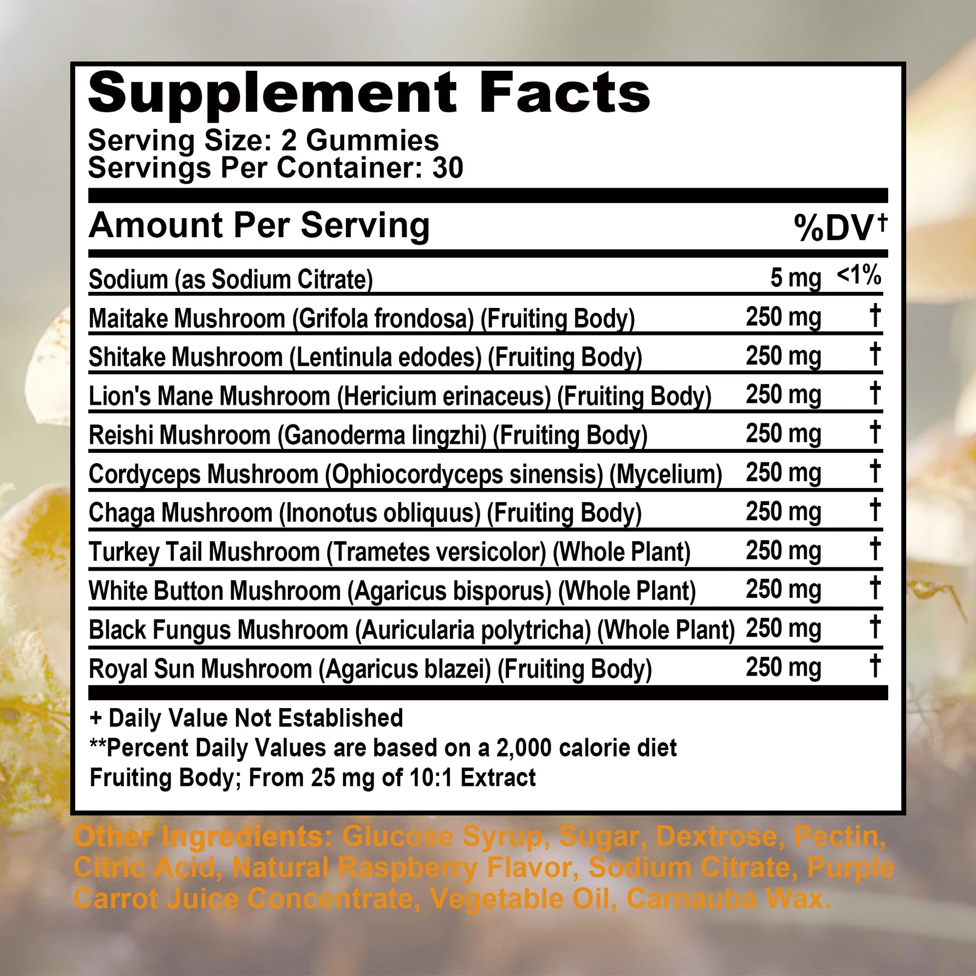 Mushroom Gummies – Brain Health, Memory & Immune Support (60 Count)
